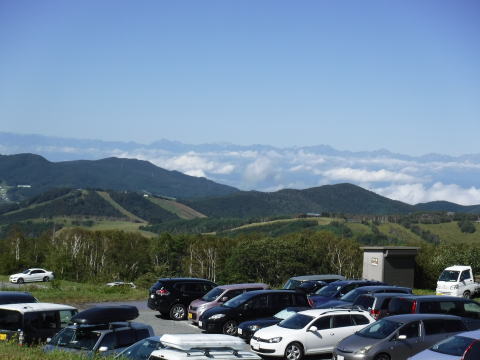 菅平の牧場上部まで登って来ました。平日にも関わらず多くの車が止まっています。