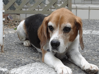 | 平成24年4月28日に里子のトライヤルとしてやって来ました。名前は桃之介です。愛称は「モモ」です。先代より一回り小さいビーグル犬です。今はしつけ教室に通っています。 | |